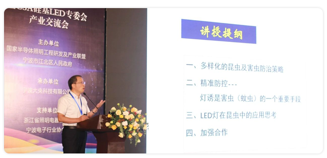 作为该领域国内最顶级的盛会之一,在国家半导体照明工程研发及产业联盟(CSA)、宁波市江北区区政府、区委办的大力支持下,包括:中国科学院院士、南昌大学副校长江风益,中科院半导体研究所研究员、半导体照明联合创新国家重点实验室主任李晋闽,中科院动物所农业虫害鼠综合治理研究国家重点实验室主任、中国昆虫学会党委书记兼秘书长戈峰,中国疾控中心传染病控制所媒介生物控制室主任、中华预防医学会媒介生物学及控制分会主任委员刘起勇,中国昆虫学会资源昆虫专业委员会主任、华中农业大学昆虫资源研究所所长雷朝亮在内的国内知名专家学者,以及中科院半导体所,中国疾控中心,华南农业大学,中科院动物所,中科院宁波材料所等科研机构代表,齐聚宁波出席了本次论坛。